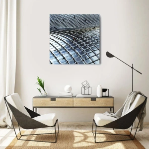 Wanduhr - Glasuhr - Moderne Struktur aus metallischen Quadraten - 30x30cm - Metallische silberne Welle - Moderne Wanddekoration für Wohnzimmer und Schlafzimmer ARTTOR