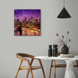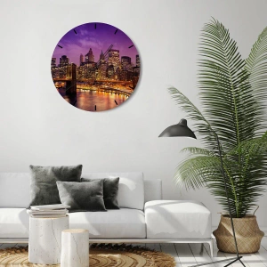 Wanduhr - Glasuhr - Violett-goldenes Manhathann - 40x40 cm