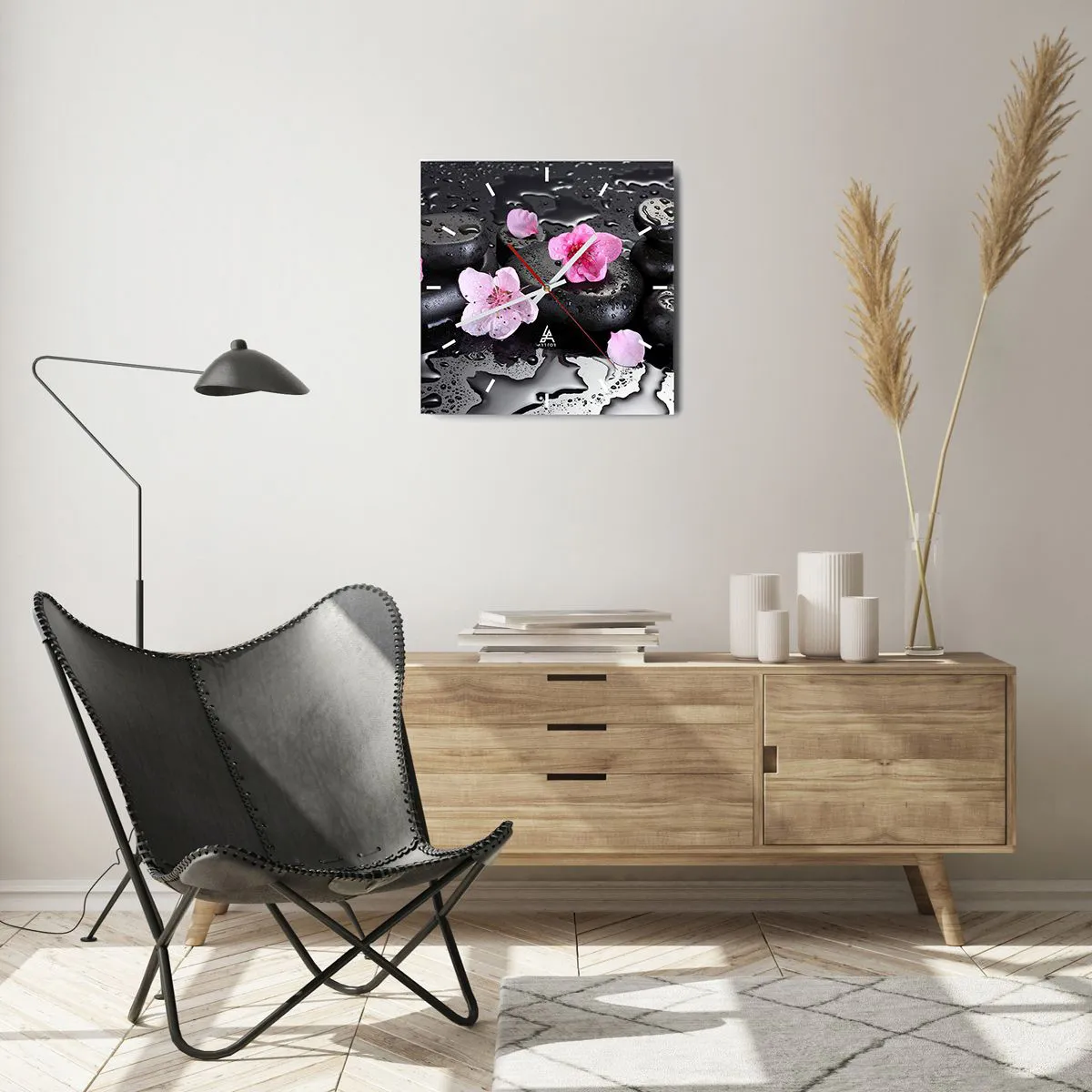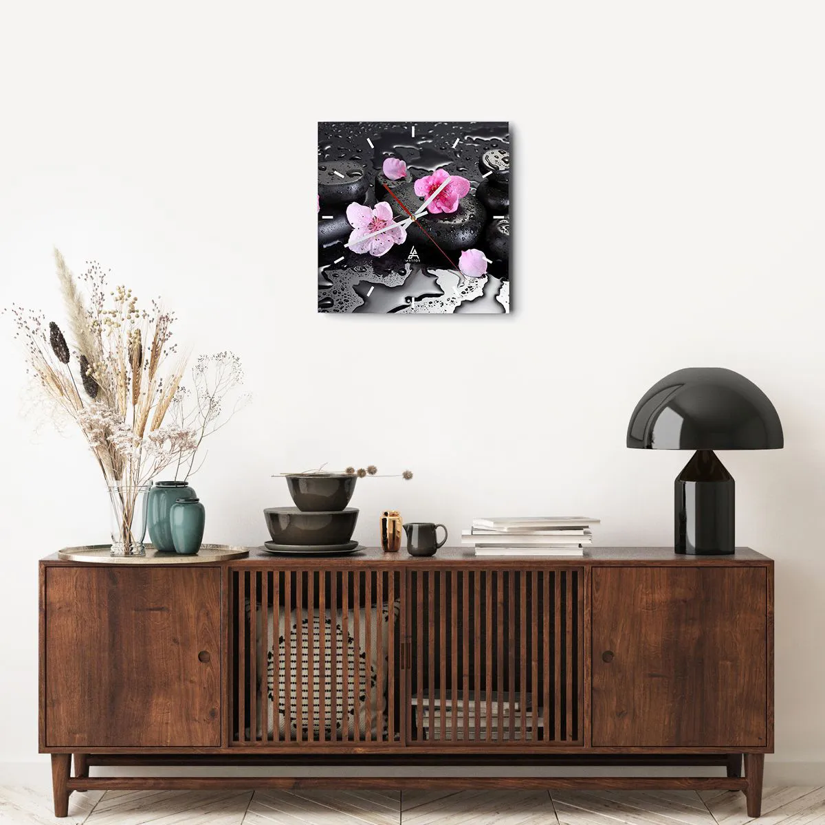 • Blumen, Asien, Spa, Botanik, Blumen, Für das Büro, für das Arbeitszimmer, für das Esszimmer, für das Badezimmer, für den Flur, für das Wohnzimmer, für das Schlafzimmer, Schwarz, Rosa, Quadrat