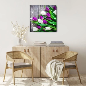 • Blumen, Tulpen, Blumenstrauß, Botanik, Blumen, Für das Büro, für das Arbeitszimmer, für das Esszimmer, für den Flur, für das Wohnzimmer, für das Schlafzimmer, Weiß, Lila, Grau, Quadrat