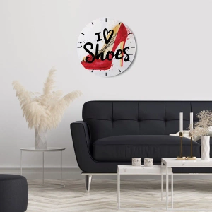 Wanduhr - Glasuhr - Roter Stiletto mit der Aufschrift „I love Shoes“ auf weißem Hintergrund - 30x30cm - Liebe hat viele Namen - Moderne Wanddekoration für Wohnzimmer und Schlafzimmer ARTTOR