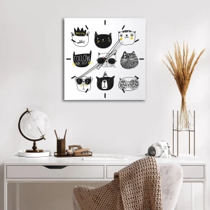 Die Uhr besteht aus 4 mm dickem Sicherheitsglas Glas. Die Herstellungstechnologie der Uhr entspricht der Sicherheitsklasse 2B2 gemäß der Norm PN-EN 12600: 2004, die Stoßfestigkeit garantiert. Die Uhr auf dem Glas ist bereit zu hängen - es hat einen Metallanhänger, einen Anhänger auf der Rückseite der Uhr und einen Schaumstoffabstand, der einen gleichmäßigen Abstand zwischen der Uhr und der Wand reguliert. Die Uhr hat einen geräuschlosen Schwimmmechanismus, der von einer 1,5-V-Batterie betrieben wird - AA-Batterie inbegriffen).