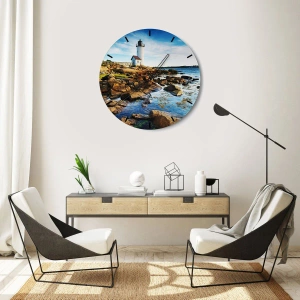 Die Uhr besteht aus 4 mm dickem Sicherheitsglas Glas. Die Herstellungstechnologie der Uhr entspricht der Sicherheitsklasse 2B2 gemäß der Norm PN-EN 12600: 2004, die Stoßfestigkeit garantiert. Die Uhr auf dem Glas ist bereit zu hängen - es hat einen Metallanhänger, einen Anhänger auf der Rückseite der Uhr und einen Schaumstoffabstand, der einen gleichmäßigen Abstand zwischen der Uhr und der Wand reguliert. Die Uhr hat einen geräuschlosen Schwimmmechanismus, der von einer 1,5-V-Batterie betrieben wird - AA-Batterie inbegriffen).