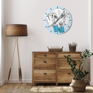Wanduhr - Glasuhr - Entzückende Grafik eines Hundes mit Fliege auf pastellfarbenem Hintergrund - 30x30cm - Hunde-Eleganz - Moderne Wanddekoration für Wohnzimmer und Schlafzimmer ARTTOR