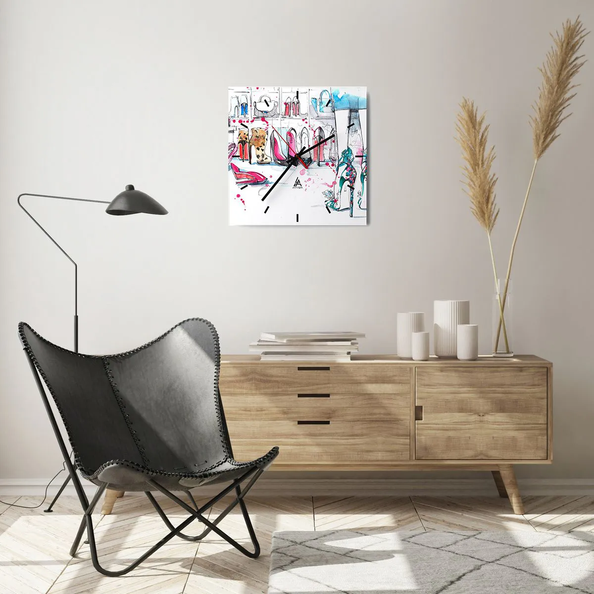 Die Uhr besteht aus robustem 4 mm dickem Glas. Glas bewahrt die natürlichen Farben des Drucks