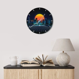 Wanduhr - Glasuhr - Futuristische Skyline im Neon-Stil - 30x30cm - Willst du immer noch zu Real gehen? - Moderne Wanddekoration für Wohnzimmer und Schlafzimmer ARTTOR