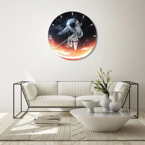 Die Uhr besteht aus 4 mm dickem Sicherheitsglas Glas. Die Herstellungstechnologie der Uhr entspricht der Sicherheitsklasse 2B2 gemäß der Norm PN-EN 12600: 2004, die Stoßfestigkeit garantiert. Die Uhr auf dem Glas ist bereit zu hängen - es hat einen Metallanhänger, einen Anhänger auf der Rückseite der Uhr und einen Schaumstoffabstand, der einen gleichmäßigen Abstand zwischen der Uhr und der Wand reguliert. Die Uhr hat einen geräuschlosen Schwimmmechanismus, der von einer 1,5-V-Batterie betrieben wird - AA-Batterie inbegriffen).
