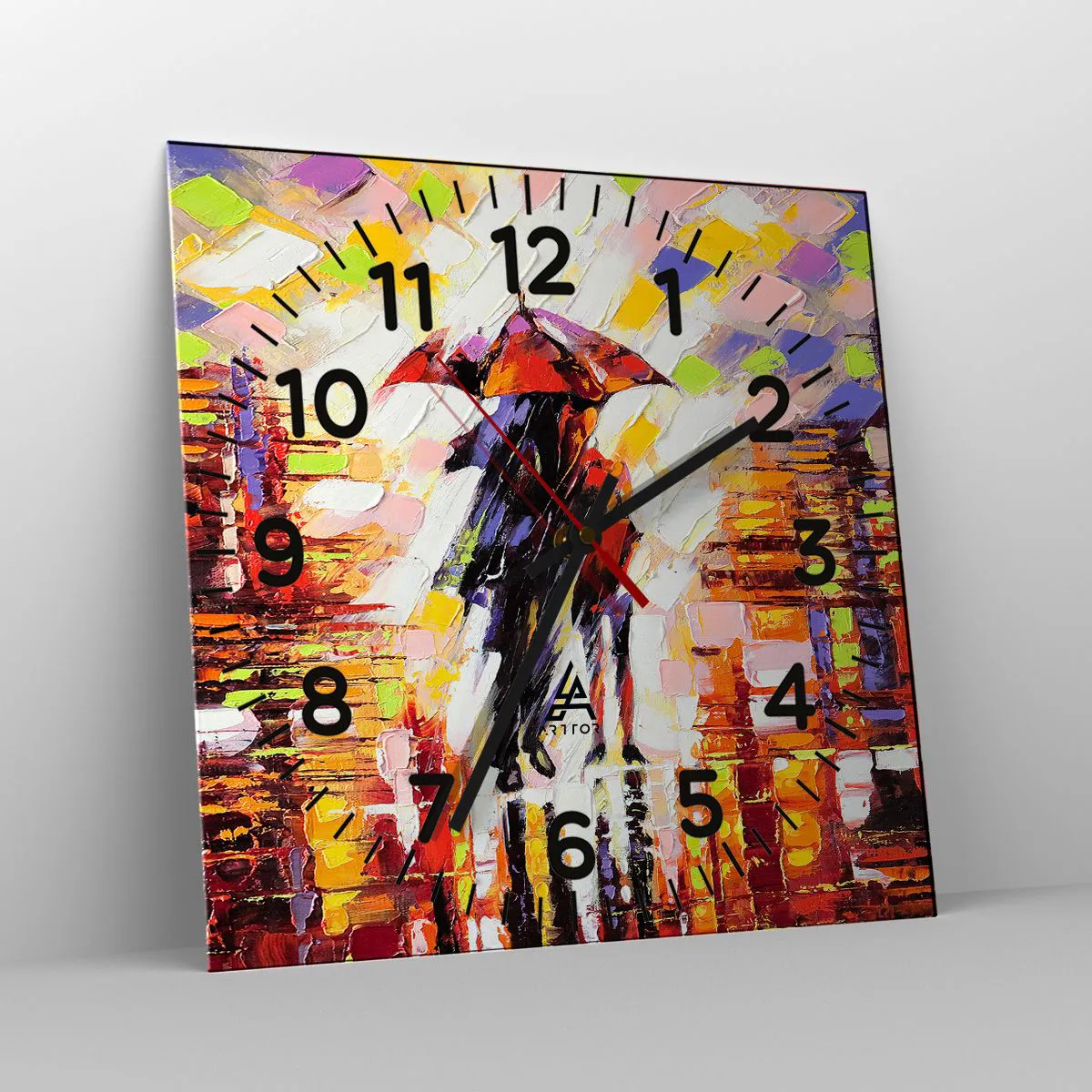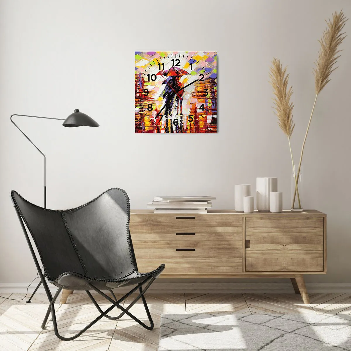 Wanduhr - Glasuhr - Gemeinsam durch die Nacht und den Regen - 40x40 cm