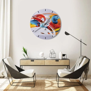 Wanduhr - Glasuhr - Bunte Abstraktion mit dynamischen Linien und lebendigen Farben - 30x30cm - Der Tanz der Elemente - Moderne Wanddekoration für Wohnzimmer und Schlafzimmer ARTTOR