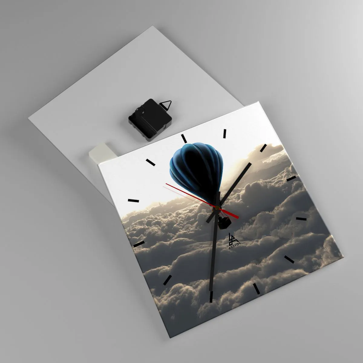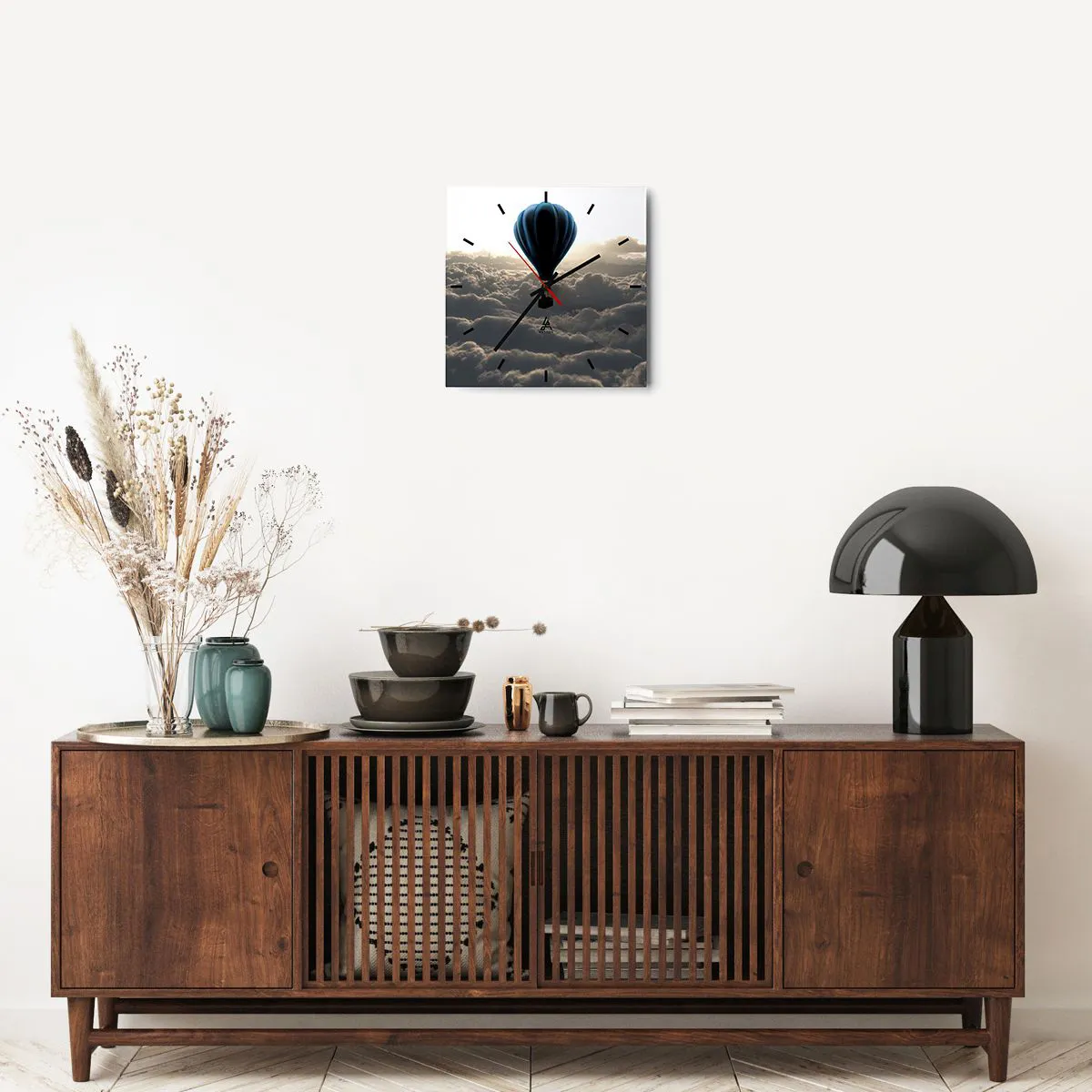 Wanduhr - Glasuhr - Ein Heißluftballon vor einem Himmel mit Wolken bei Sonnenuntergang - 30x30cm - Ein Wanderer über den Wolken - Moderne Wanddekoration für Wohnzimmer und Schlafzimmer ARTTOR