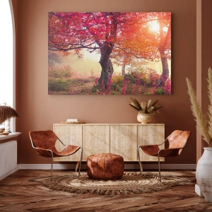 Bild auf Leinwand - Leinwandbild - Herbstlandschaft mit Bäumen in intensiven Farben - 100x70cm - Blühende Raserei - Moderne Wanddekoration für Wohnzimmer und Schlafzimmer ARTTOR