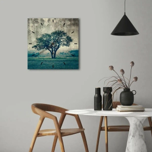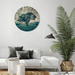 Wanduhr - Glasuhr - Ein Apfelbaum auf blauem Feld? - 30x30 cm