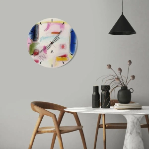 Die Uhr besteht aus 4 mm dickem Sicherheitsglas Glas. Die Herstellungstechnologie der Uhr entspricht der Sicherheitsklasse 2B2 gemäß der Norm PN-EN 12600: 2004, die Stoßfestigkeit garantiert. Die Uhr auf dem Glas ist bereit zu hängen - es hat einen Metallanhänger, einen Anhänger auf der Rückseite der Uhr und einen Schaumstoffabstand, der einen gleichmäßigen Abstand zwischen der Uhr und der Wand reguliert. Die Uhr hat einen geräuschlosen Schwimmmechanismus, der von einer 1,5-V-Batterie betrieben wird - AA-Batterie inbegriffen).