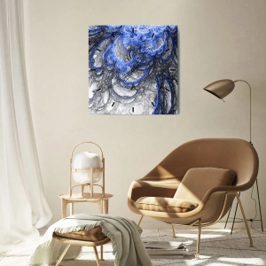 Wanduhr - Glasuhr - Abstraktes Wellenmotiv in Blau- und Grautönen - 30x30cm - Die Geburt einer Welle - Moderne Wanddekoration für Wohnzimmer, Küche und Schlafzimmer ARTTOR