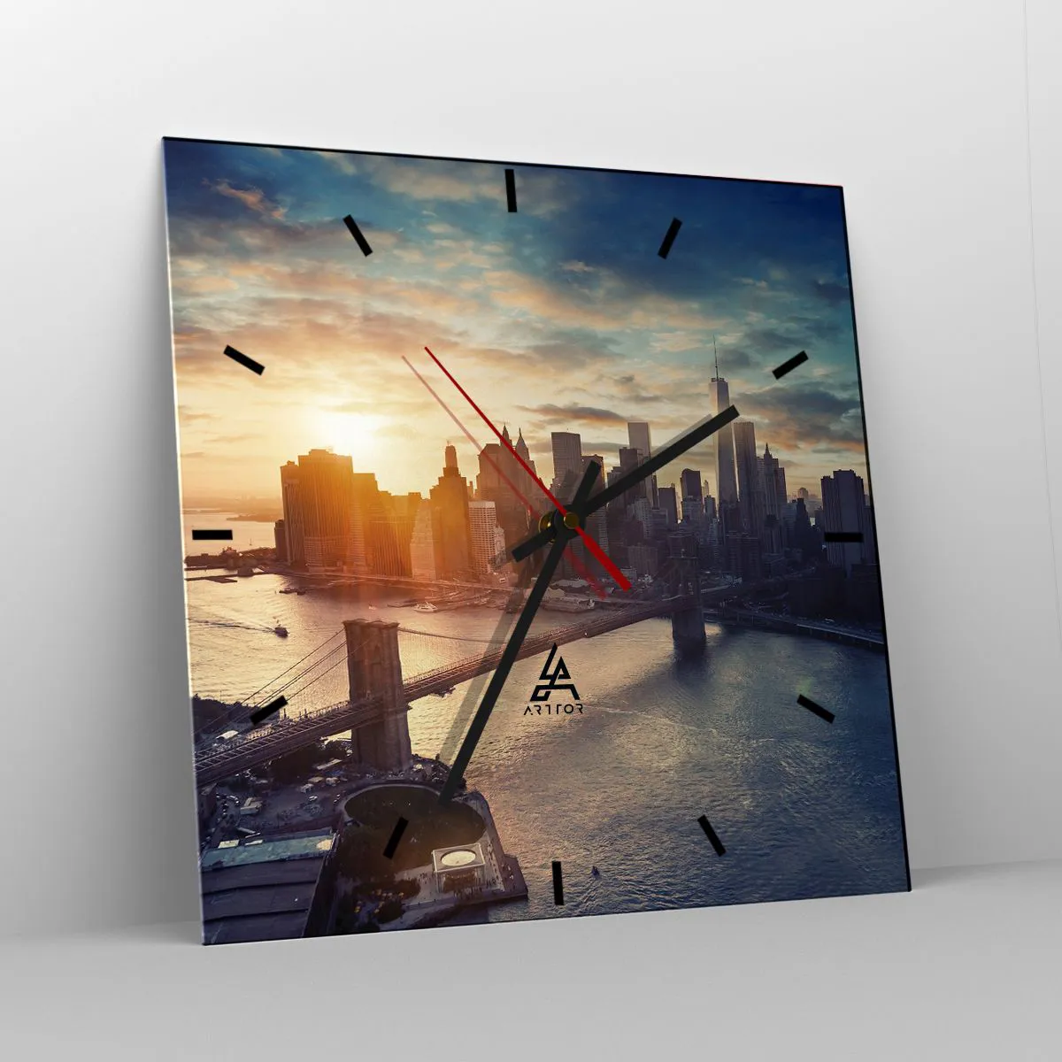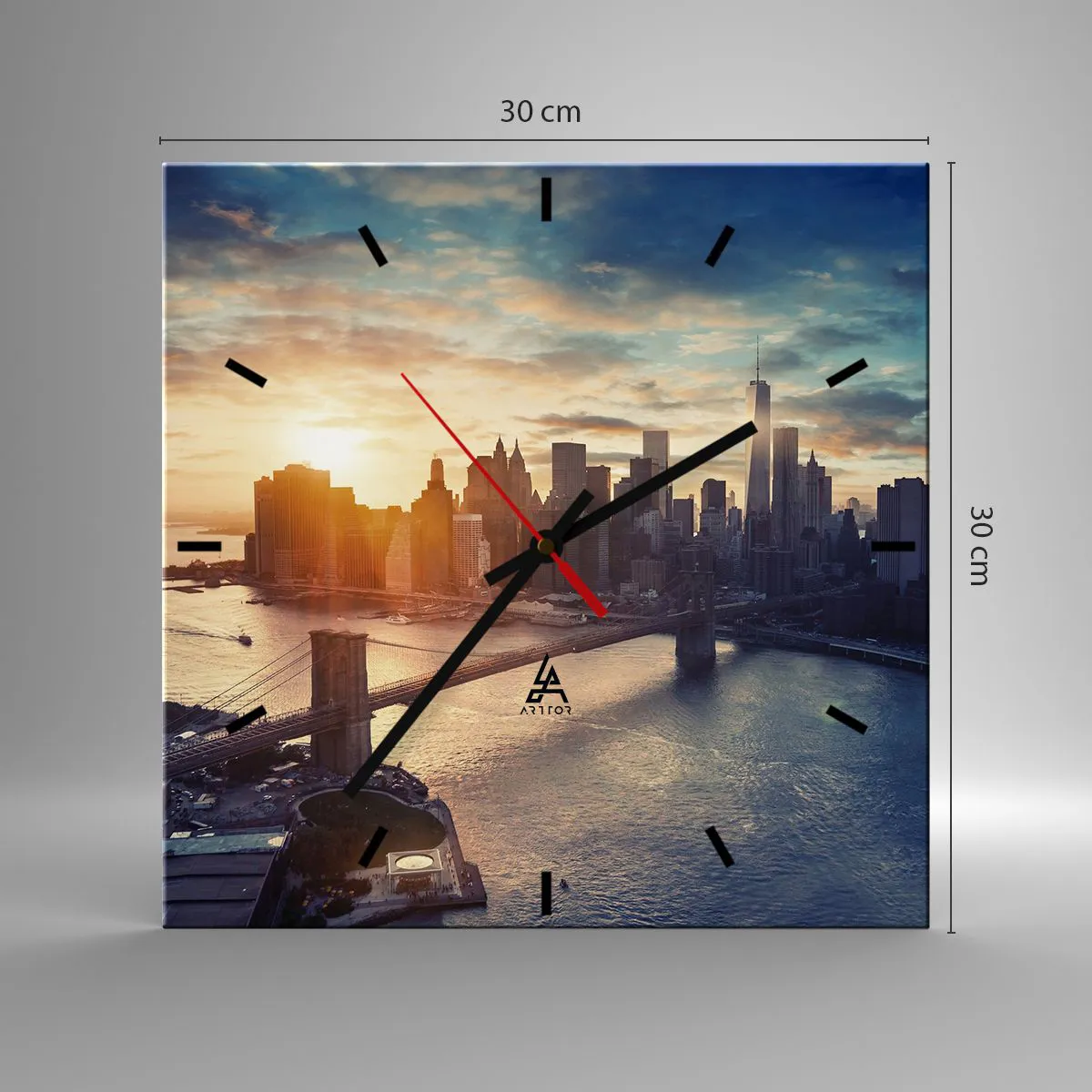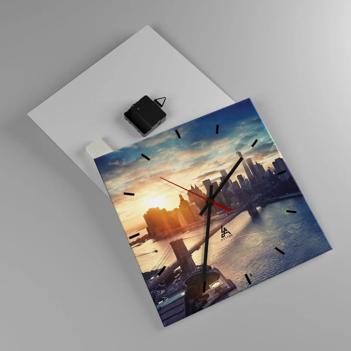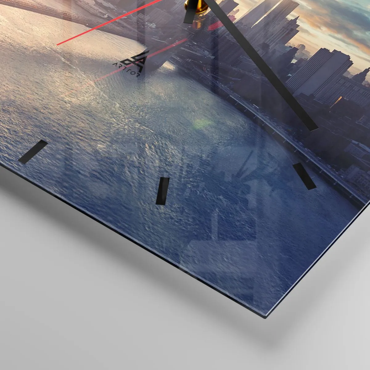 Wanduhr - Glasuhr - Panorama der Stadt mit der Brücke und dem Fluss im Licht der untergehenden Sonne - 30x30cm - Westliches Kulturdenkmal - Moderne Wanddekoration für Wohnzimmer und Schlafzimmer ARTTOR