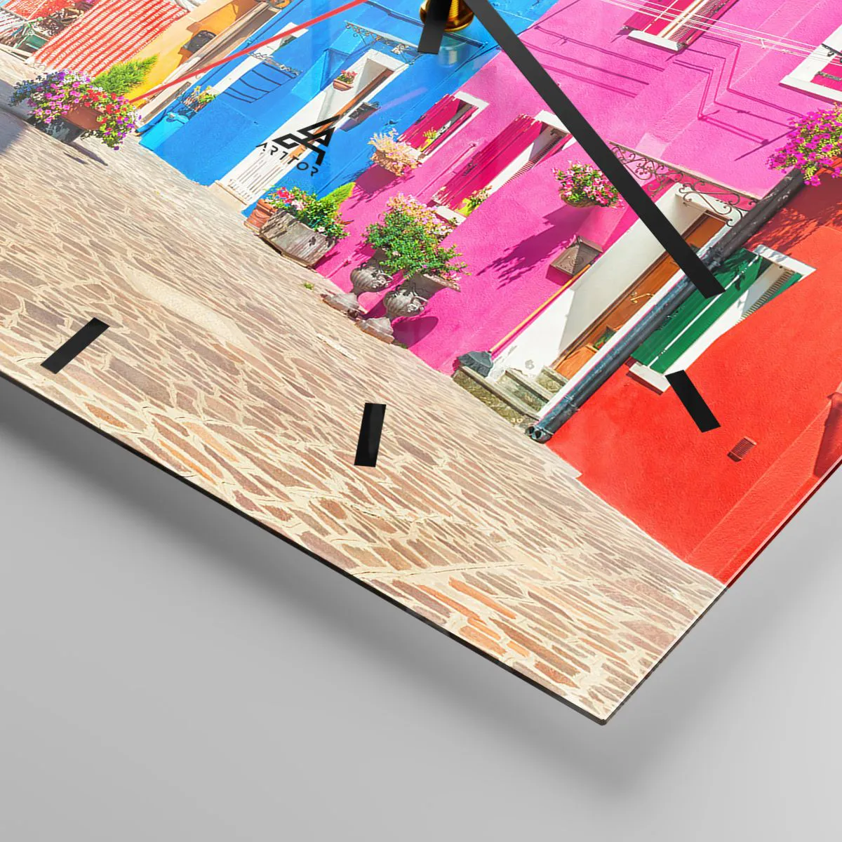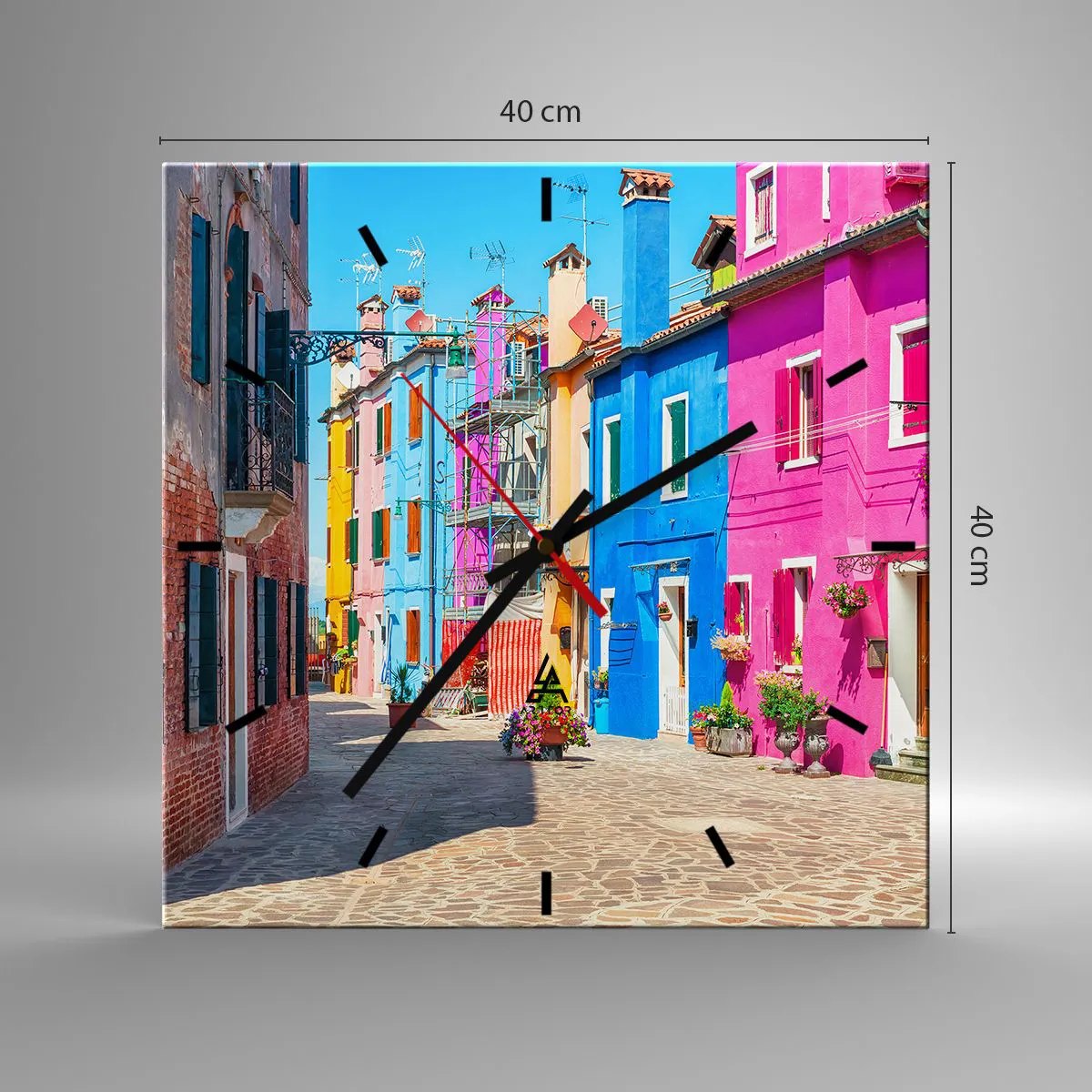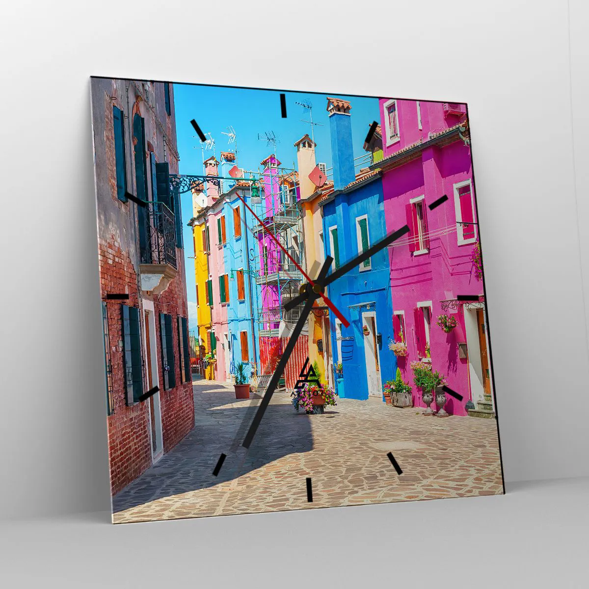 Wanduhr - Glasuhr - Städtchen "Zu Papageien" - 40x40 cm
