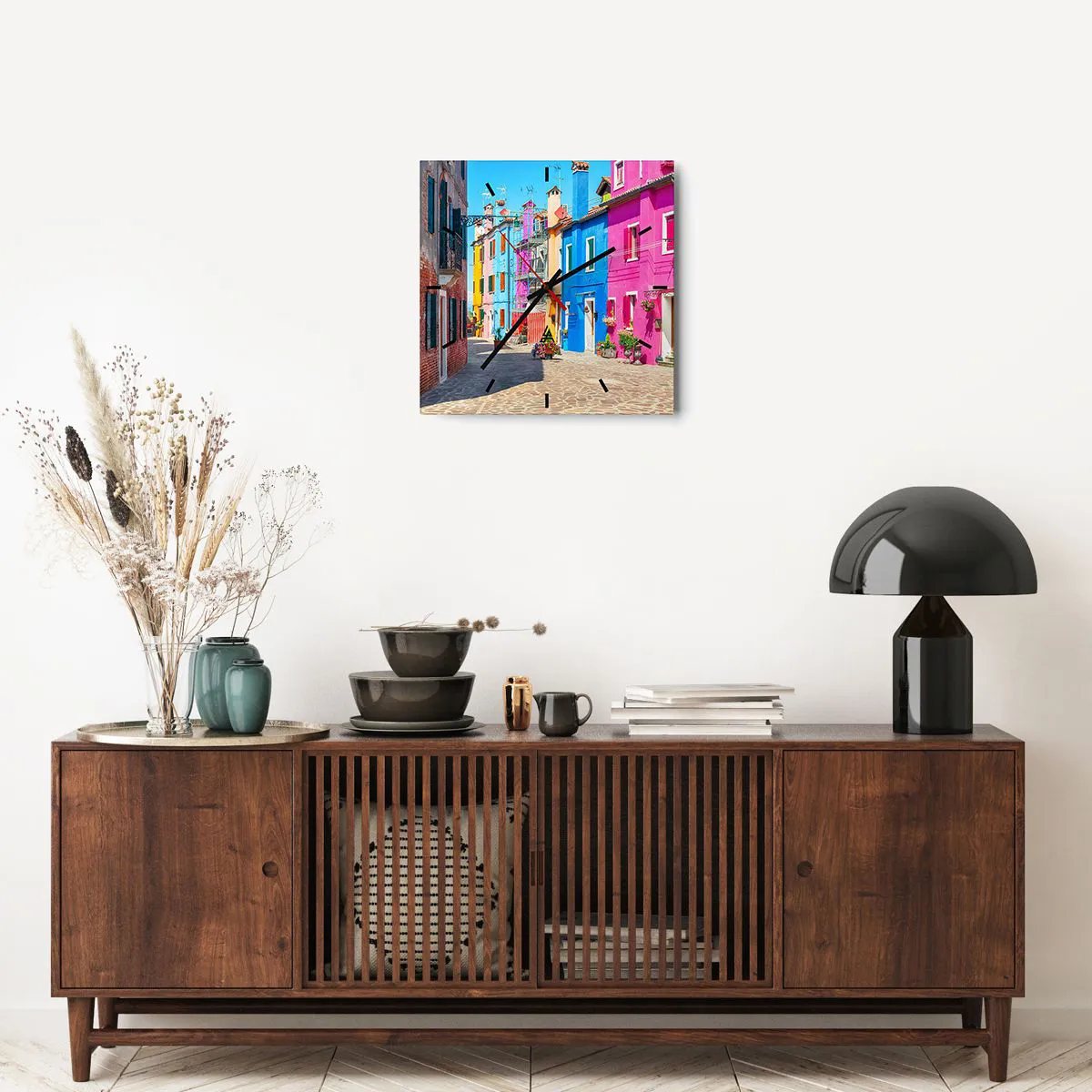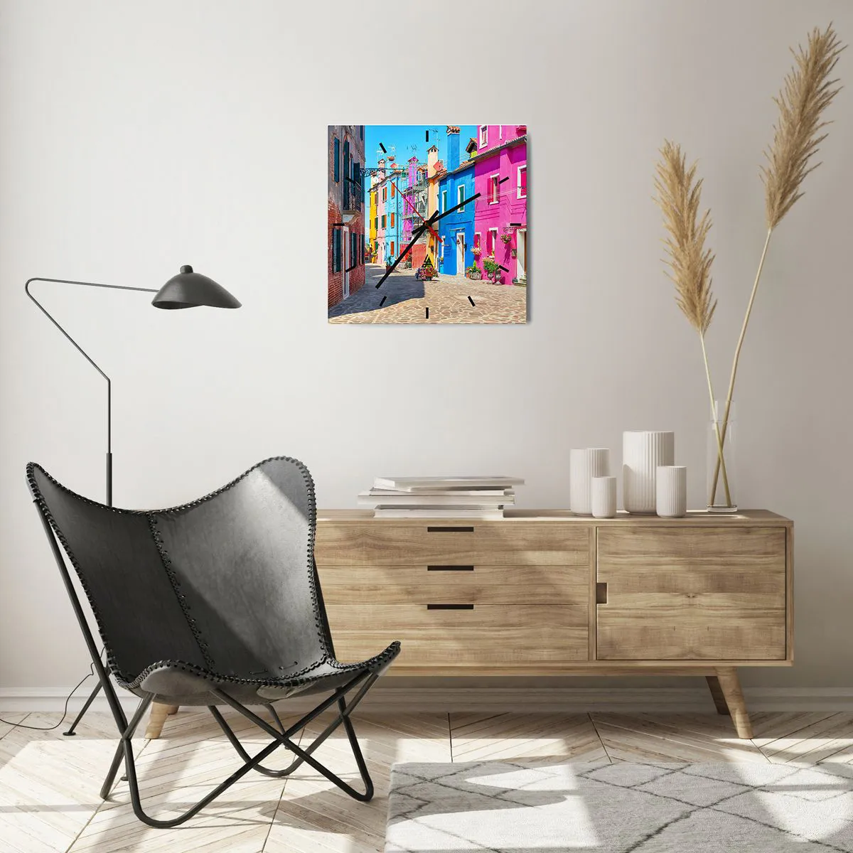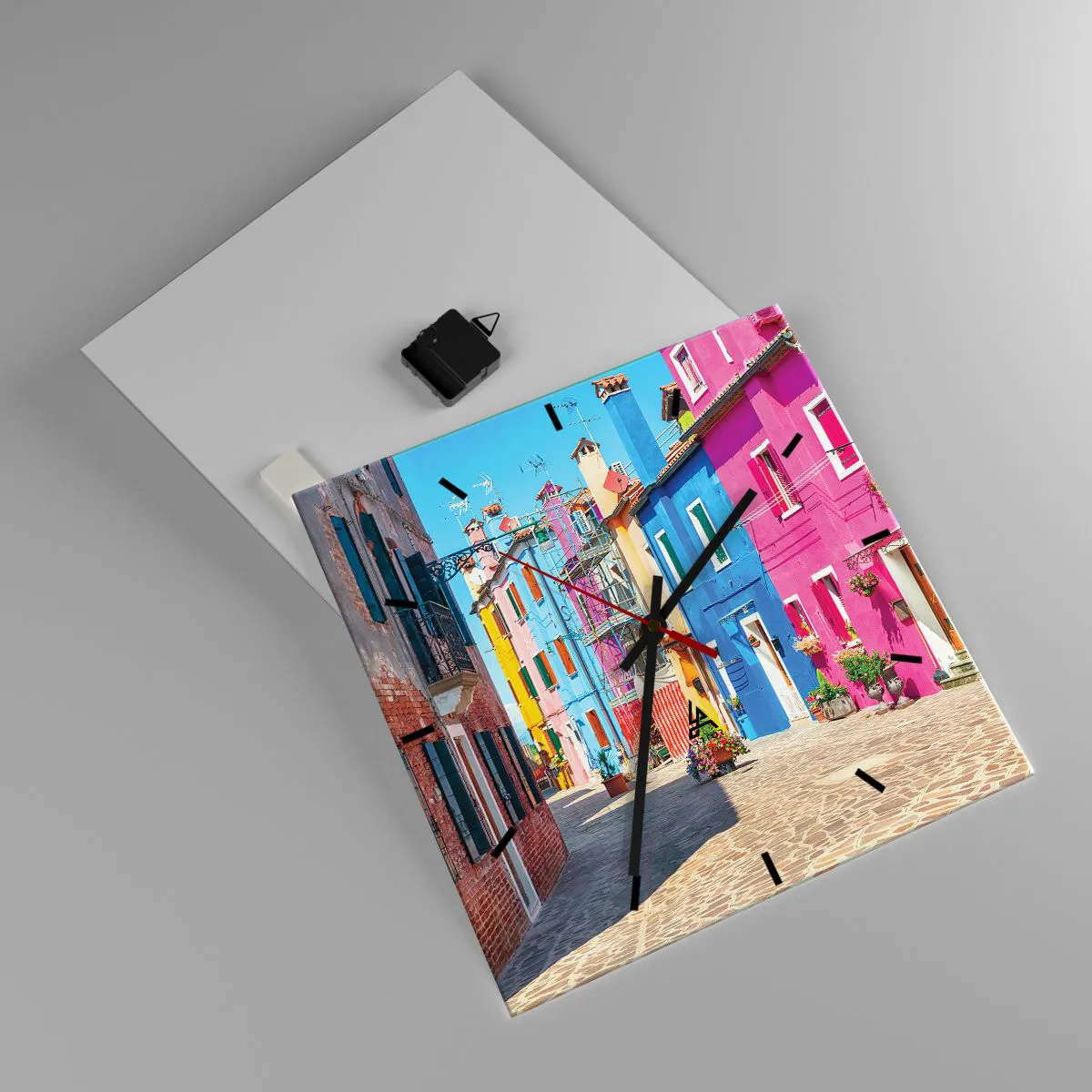 Wanduhr - Glasuhr - Städtchen "Zu Papageien" - 40x40 cm