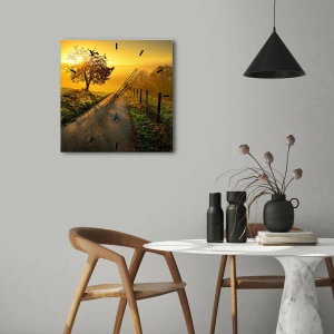 - Diese Wanduhr zeigt das malerische Motiv eines von goldenen Sonnenstrahlen erleuchteten Weges. Perfekt für Liebhaber der Natur und ruhiger Landschaften, bringt sie Wärme und Harmonie in jedes Interieur.