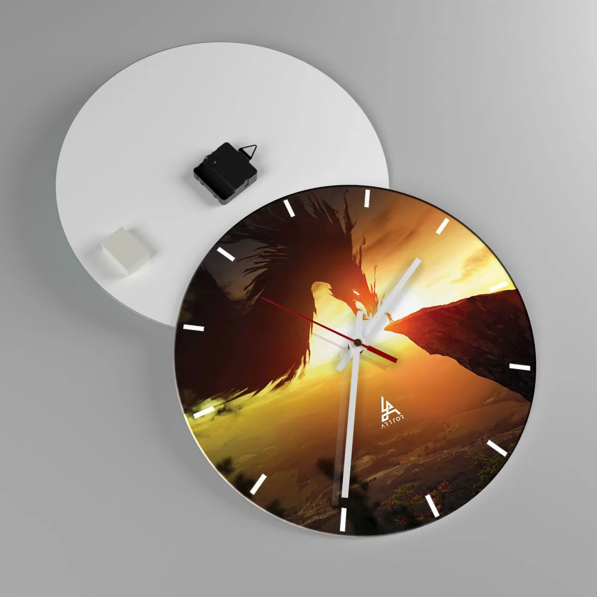 Wanduhr - Glasuhr - Drachentöter - 40x40 cm