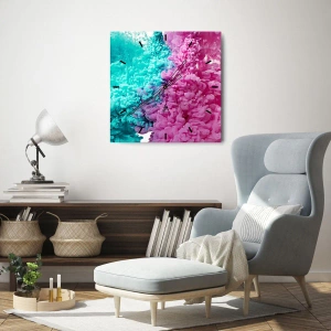 Wanduhr - Glasuhr - Bunte Wellen aus Türkis und Pink in abstrakter Form - 30x30cm - Letzte Begegnung - Moderne Wanddekoration für Wohnzimmer und Schlafzimmer ARTTOR