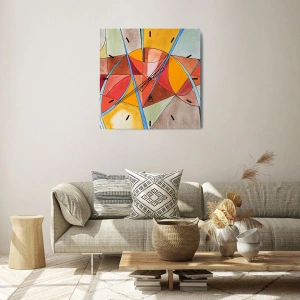Wanduhr - Glasuhr - Eine abstrakte Komposition in lebendigen geometrischen Farben. - 30x30cm - Das Karussell, das Traumkarussell - Moderne Wanddekoration für Wohnzimmer und Schlafzimmer ARTTOR