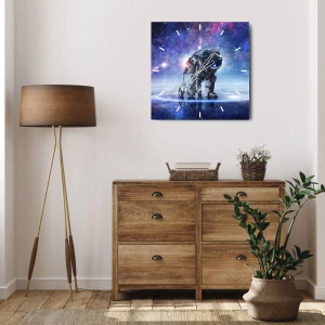 Wanduhr - Glasuhr - Ein Astronaut vor dem Hintergrund einer kosmischen Galaxie in intensiven Farben. - 30x30cm - Der Sternenhimmel über mir - Moderne Wanddekoration für Wohnzimmer, Küche und Schlafzimmer ARTTOR