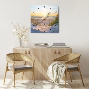 Wanduhr - Glasuhr - Das Rauschen des Meeres, der Gesang der Vögel, ein wilder Strand im Gras ... - 40x40 cm