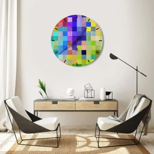 Die Uhr besteht aus 4 mm dickem Sicherheitsglas Glas. Die Herstellungstechnologie der Uhr entspricht der Sicherheitsklasse 2B2 gemäß der Norm PN-EN 12600: 2004, die Stoßfestigkeit garantiert. Die Uhr auf dem Glas ist bereit zu hängen - es hat einen Metallanhänger, einen Anhänger auf der Rückseite der Uhr und einen Schaumstoffabstand, der einen gleichmäßigen Abstand zwischen der Uhr und der Wand reguliert. Die Uhr hat einen geräuschlosen Schwimmmechanismus, der von einer 1,5-V-Batterie betrieben wird - AA-Batterie inbegriffen).