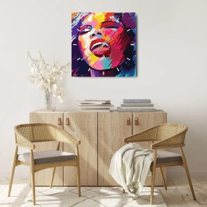 Wanduhr - Glasuhr - Abstraktes Porträt einer Frau in lebendigen Farben - 30x30cm - Sing mein ganzes Leben - Moderne Wanddekoration für Wohnzimmer und Schlafzimmer ARTTOR