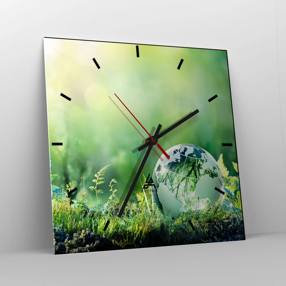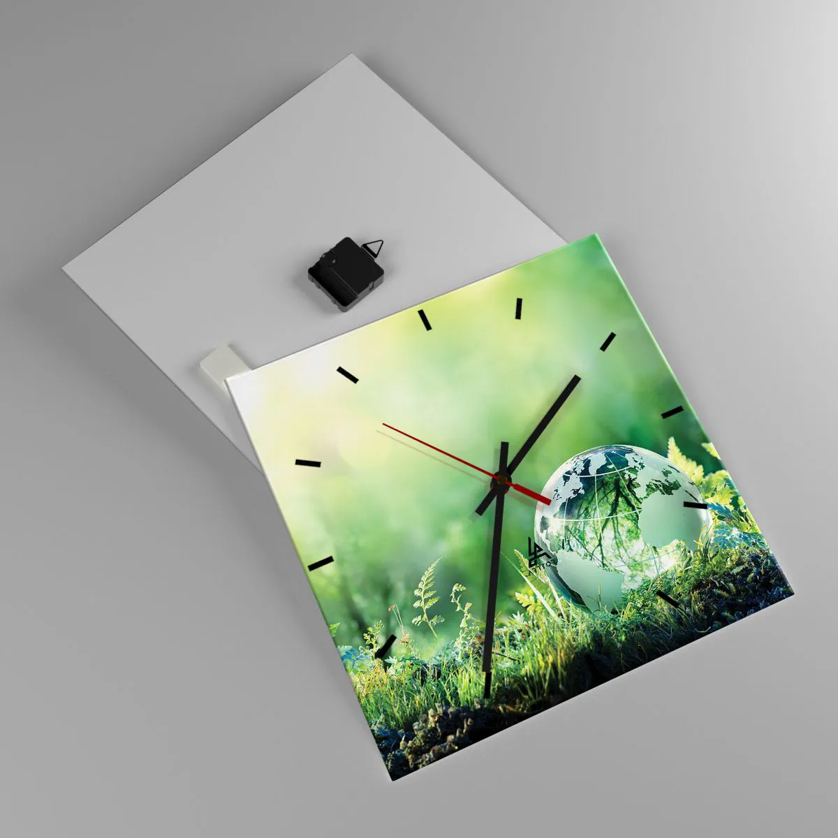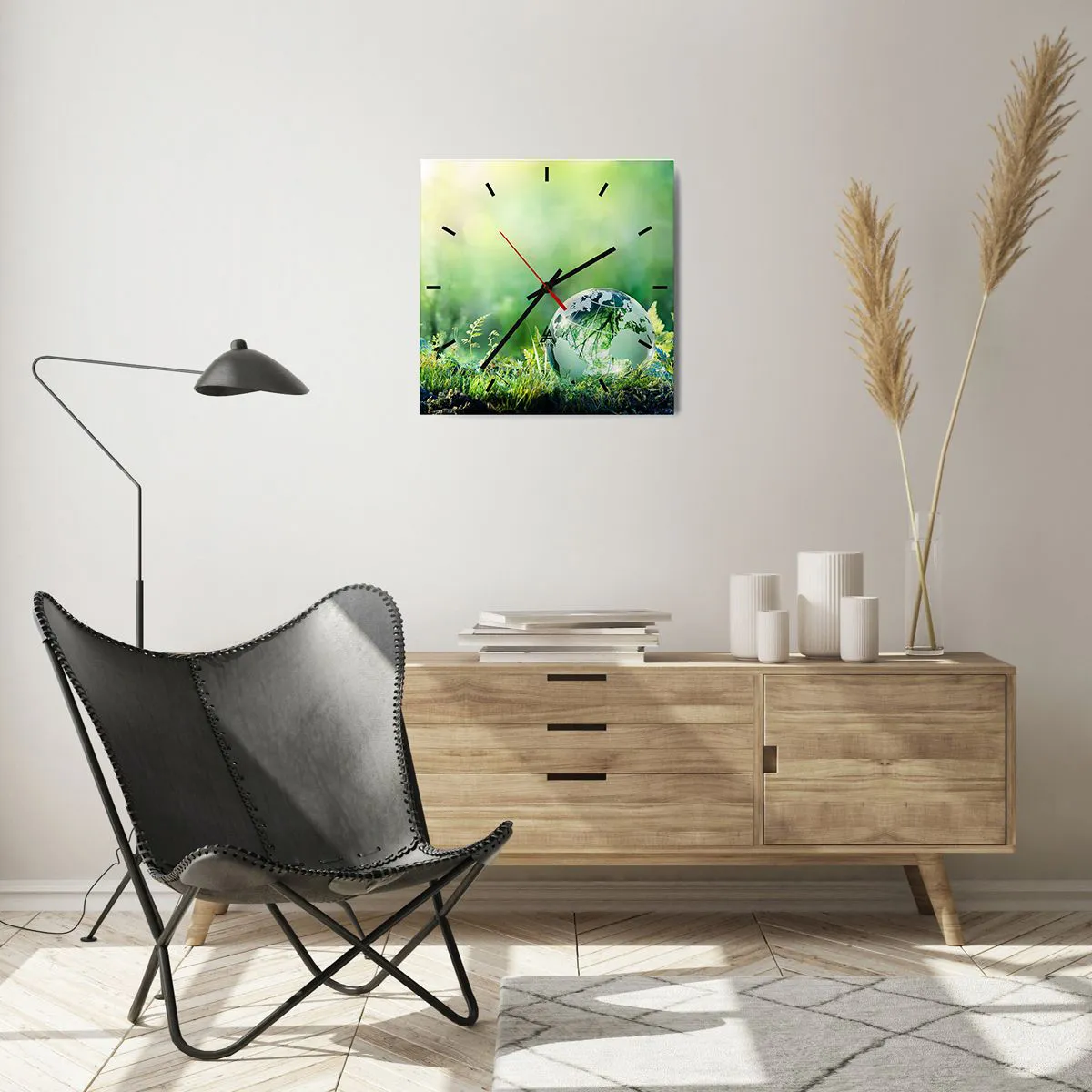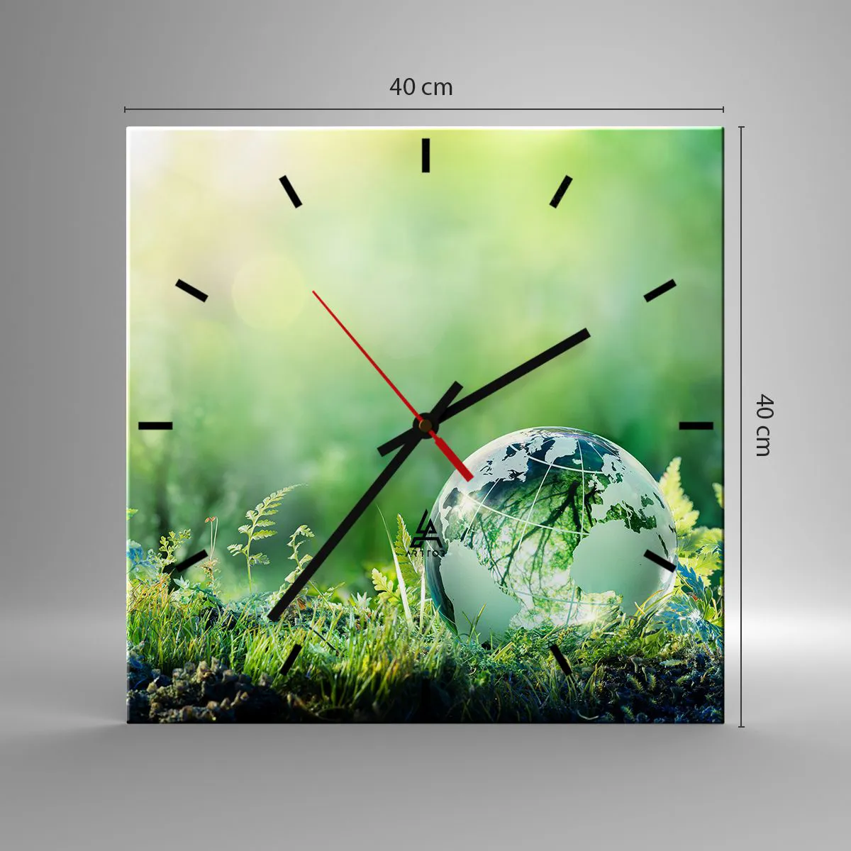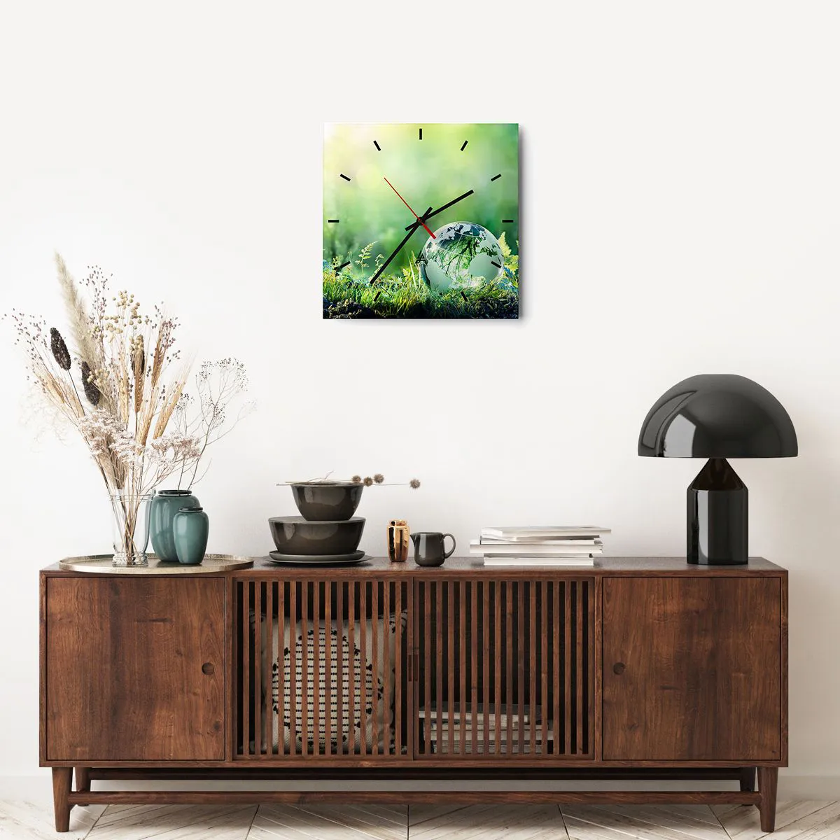 Wanduhr - Glasuhr - Der grüne Planet - 40x40 cm