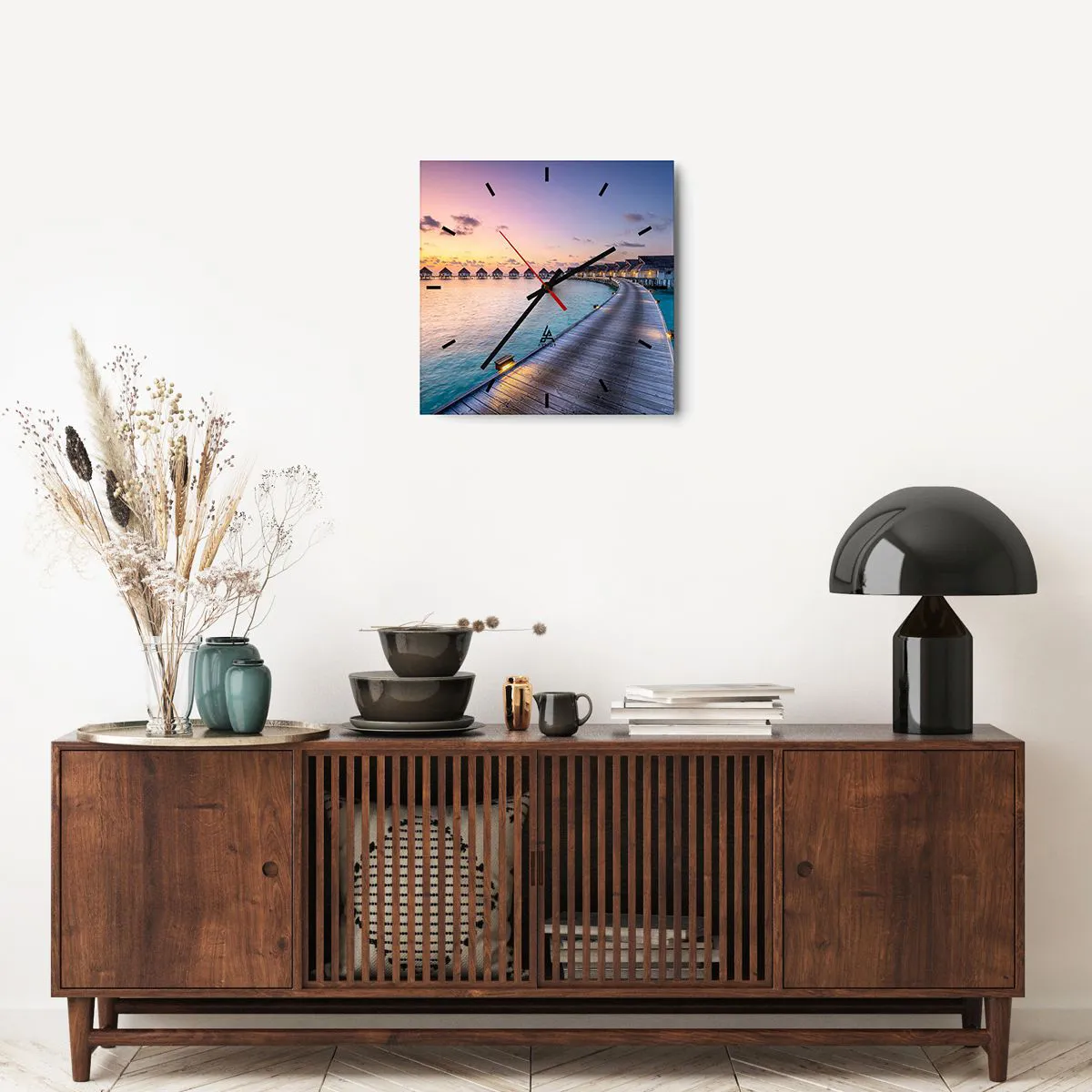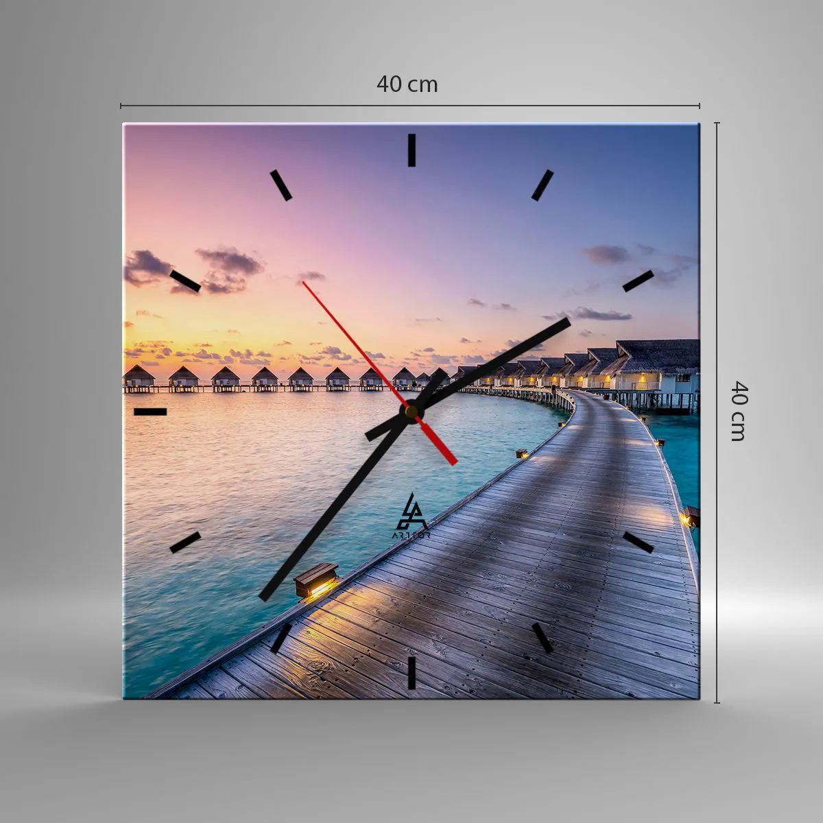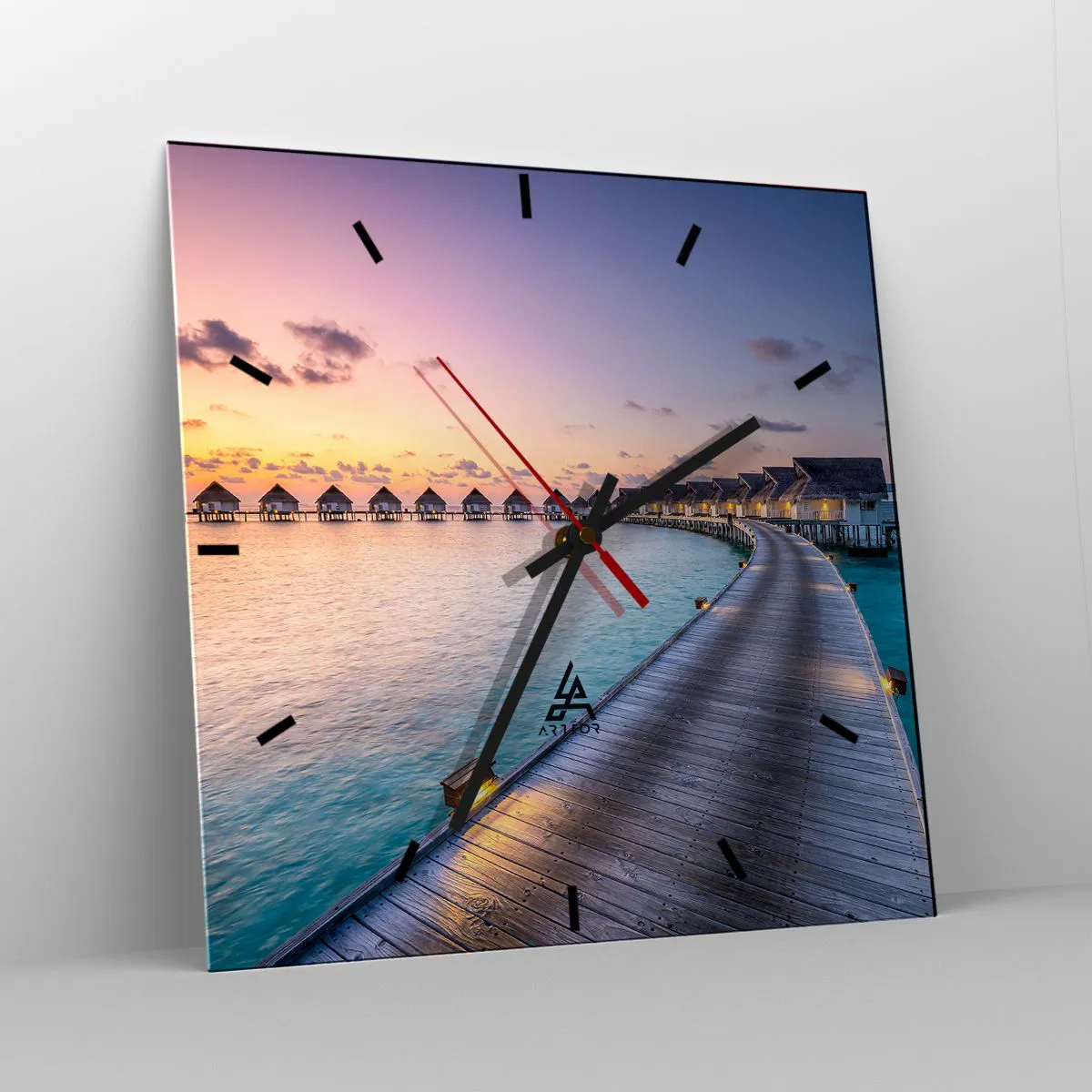 Die Uhr besteht aus robustem 4 mm dickem Glas. Glas bewahrt die natürlichen Farben des Drucks