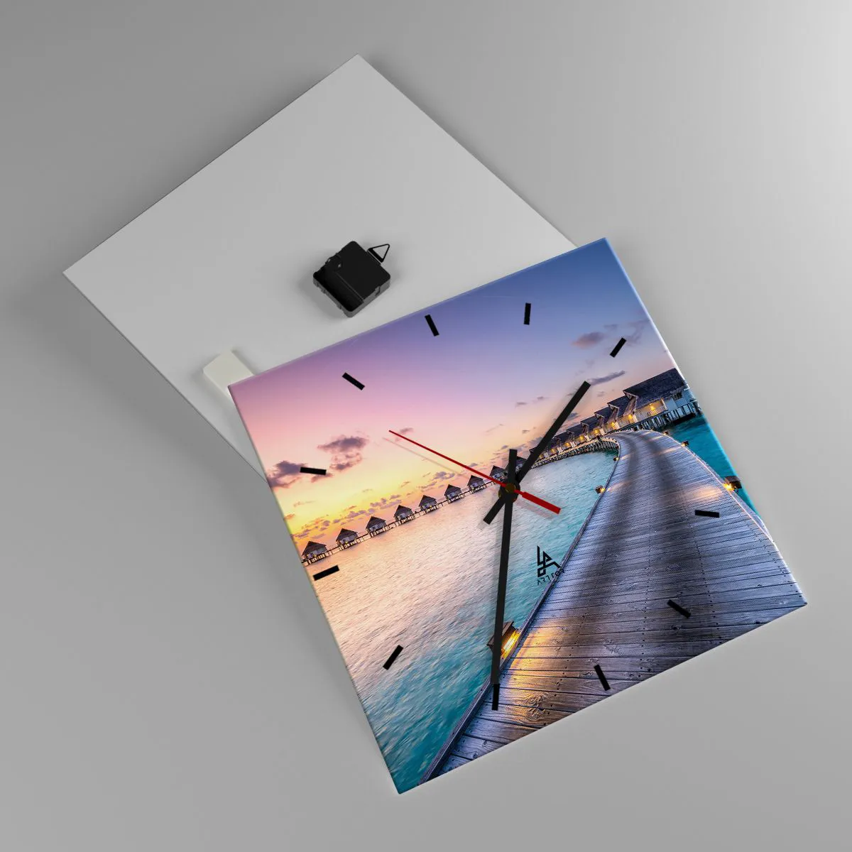 Die Uhr wird unter Verwendung moderner Drucktechnologien hergestellt, die die Erhaltung natürlicher Farben und eine hohe Farbsättigung garantieren. Die Herstellung von Uhren auf Glas erfolgt in mehreren Stufen. Hochwertiger Ausdruck und zwei Schutzschichten werden thermisch mit dem Glas verbunden. Dazu nutzen wir die innovative Technologie von Glaslaminieröfen in einer Vakuumumgebung.
