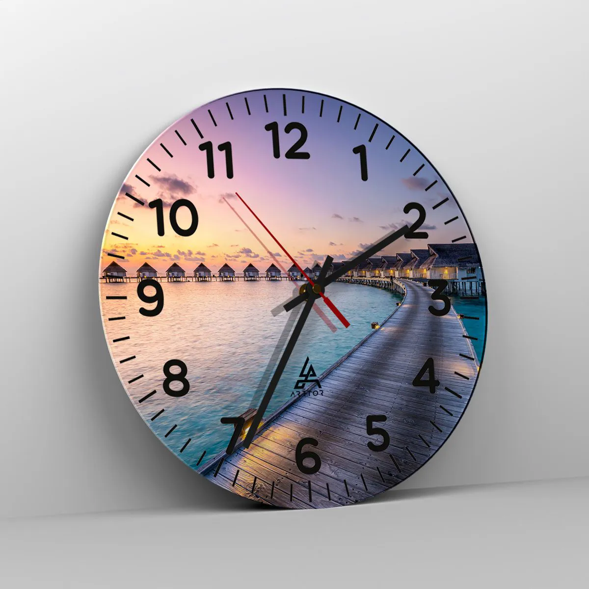 Die Uhr besteht aus robustem 4 mm dickem Glas. Glas bewahrt die natürlichen Farben des Drucks