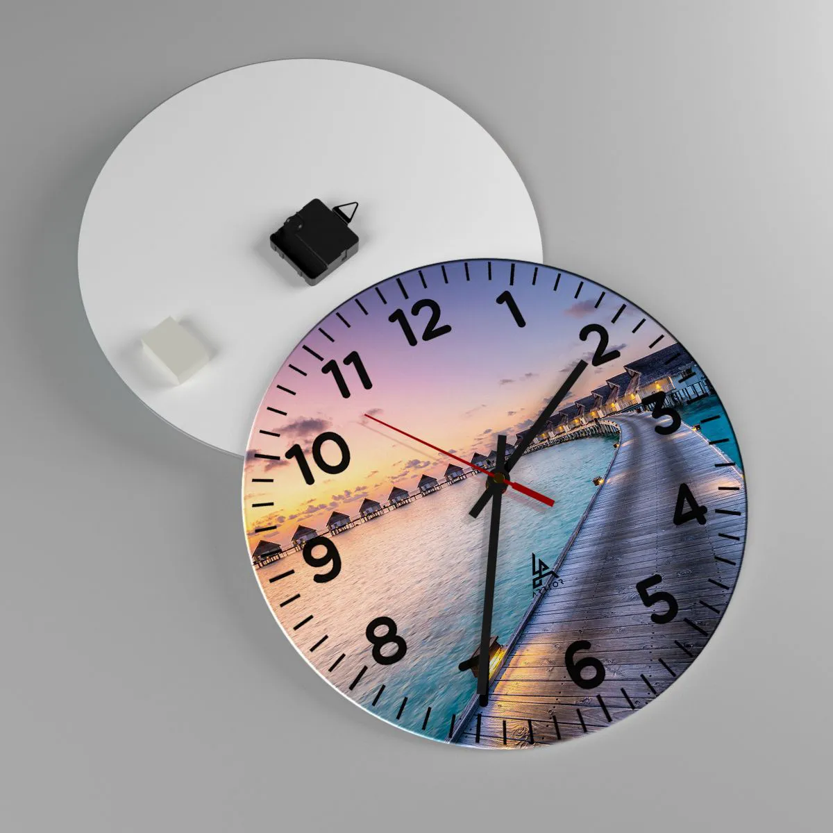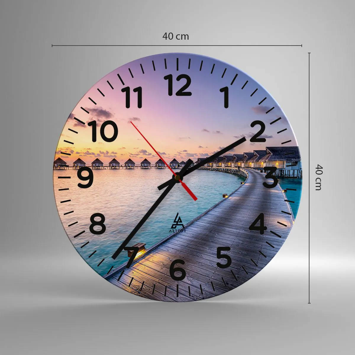 Wanduhr - Glasuhr - Urlaub - zurück zu den Quellen - 40x40 cm