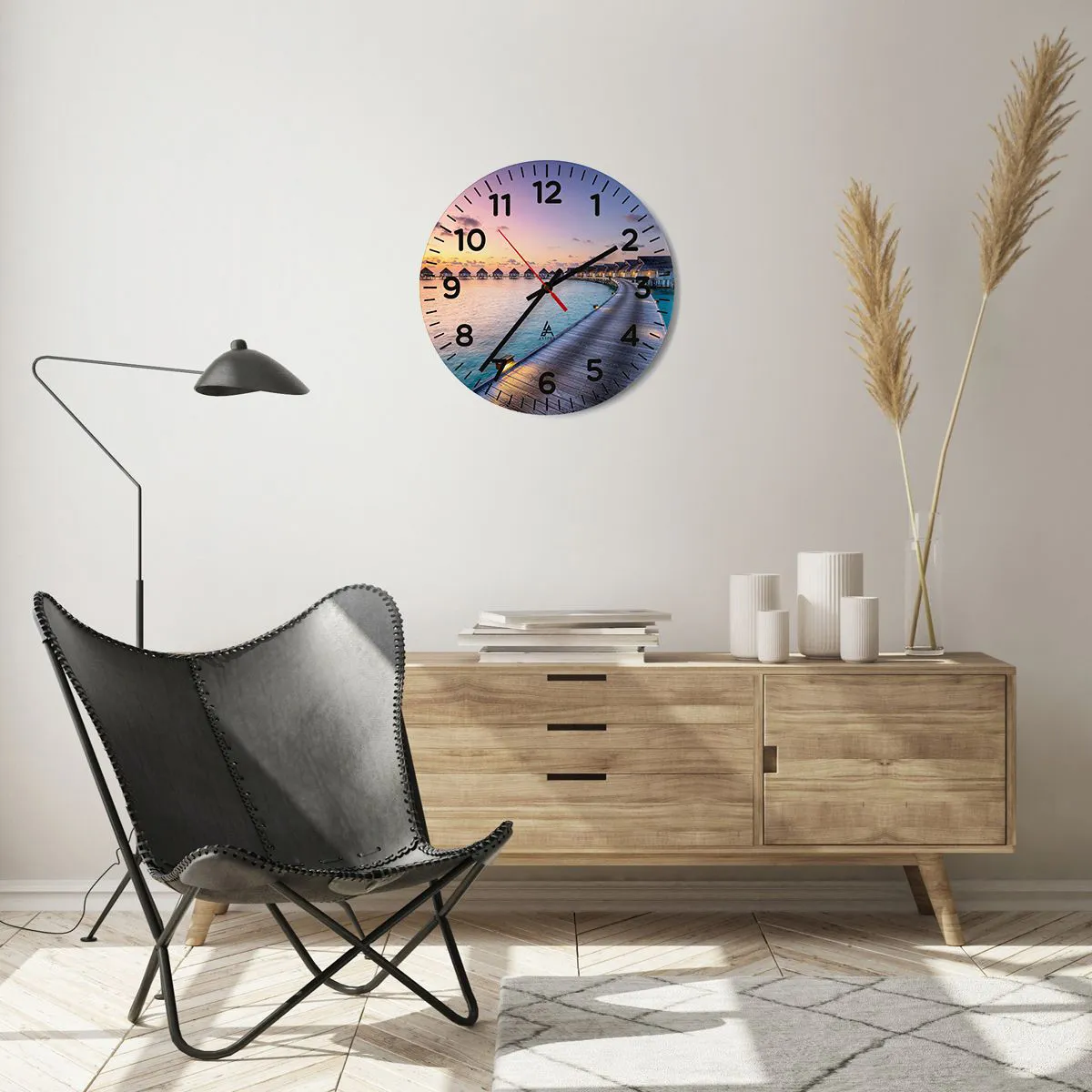 Die Uhr besteht aus robustem 4 mm dickem Glas. Glas bewahrt die natürlichen Farben des Drucks