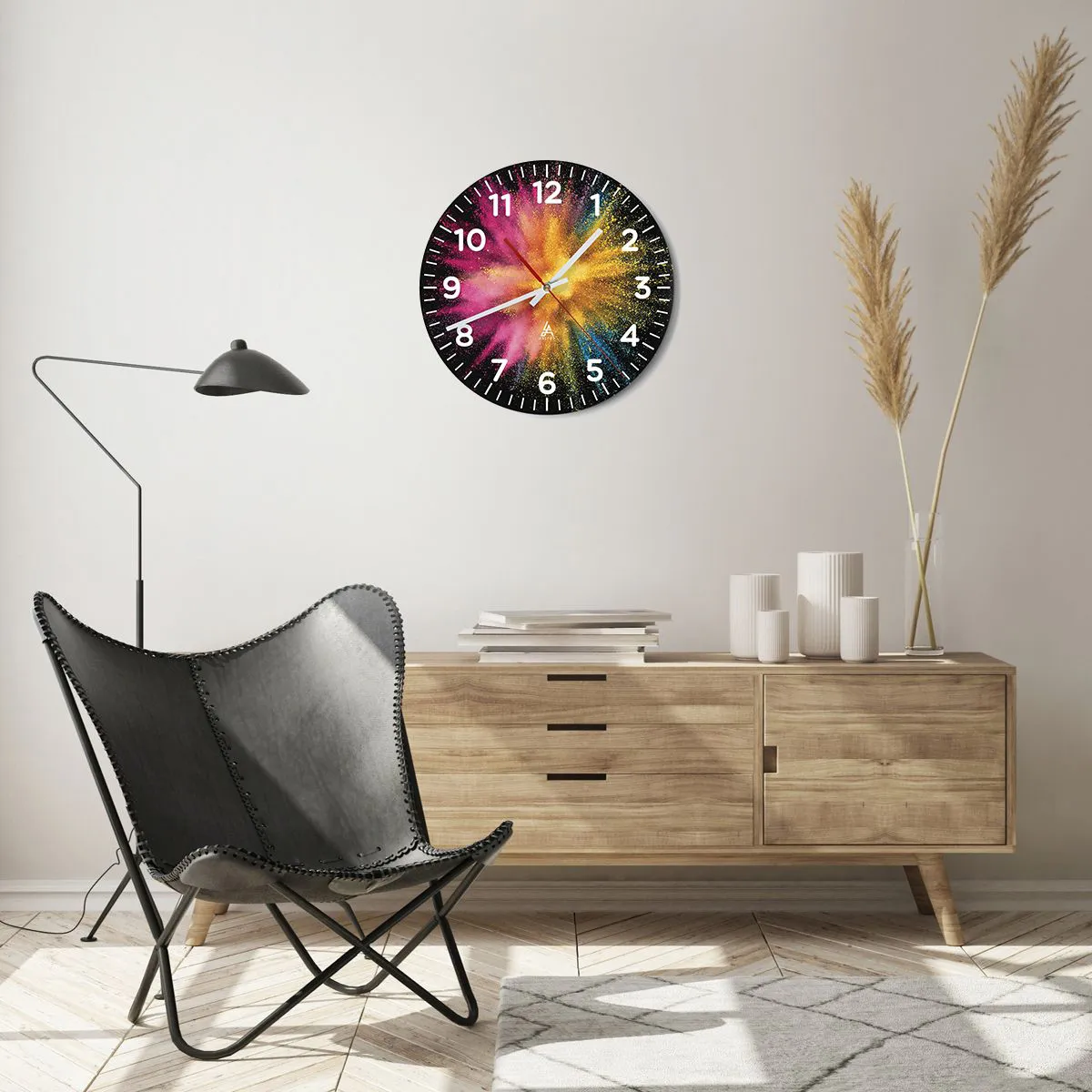 Die Uhr besteht aus robustem 4 mm dickem Glas. Glas bewahrt die natürlichen Farben des Drucks