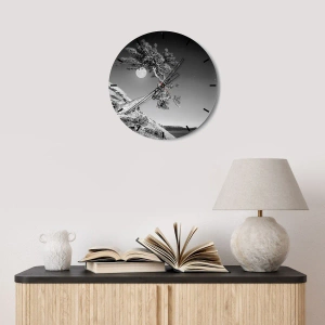 Die Uhr besteht aus 4 mm dickem Sicherheitsglas Glas. Die Herstellungstechnologie der Uhr entspricht der Sicherheitsklasse 2B2 gemäß der Norm PN-EN 12600: 2004, die Stoßfestigkeit garantiert. Die Uhr auf dem Glas ist bereit zu hängen - es hat einen Metallanhänger, einen Anhänger auf der Rückseite der Uhr und einen Schaumstoffabstand, der einen gleichmäßigen Abstand zwischen der Uhr und der Wand reguliert. Die Uhr hat einen geräuschlosen Schwimmmechanismus, der von einer 1,5-V-Batterie betrieben wird - AA-Batterie inbegriffen).