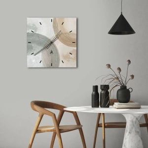 Die Uhr besteht aus 4 mm dickem Sicherheitsglas Glas. Die Herstellungstechnologie der Uhr entspricht der Sicherheitsklasse 2B2 gemäß der Norm PN-EN 12600: 2004, die Stoßfestigkeit garantiert. Die Uhr auf dem Glas ist bereit zu hängen - es hat einen Metallanhänger, einen Anhänger auf der Rückseite der Uhr und einen Schaumstoffabstand, der einen gleichmäßigen Abstand zwischen der Uhr und der Wand reguliert. Die Uhr hat einen geräuschlosen Schwimmmechanismus, der von einer 1,5-V-Batterie betrieben wird - AA-Batterie inbegriffen).