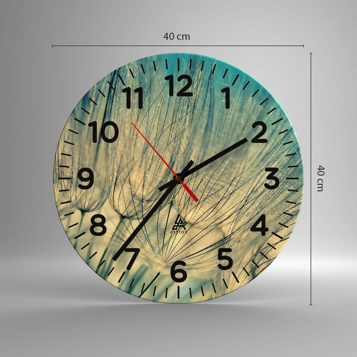 Die Uhr besteht aus 4 mm dickem Sicherheitsglas Glas. Die Herstellungstechnologie der Uhr entspricht der Sicherheitsklasse 2B2 gemäß der Norm PN-EN 12600: 2004, die Stoßfestigkeit garantiert. Die Uhr auf dem Glas ist bereit zu hängen - es hat einen Metallanhänger, einen Anhänger auf der Rückseite der Uhr und einen Schaumstoffabstand, der einen gleichmäßigen Abstand zwischen der Uhr und der Wand reguliert. Die Uhr hat einen geräuschlosen Schwimmmechanismus, der von einer 1,5-V-Batterie betrieben wird - AA-Batterie inbegriffen).