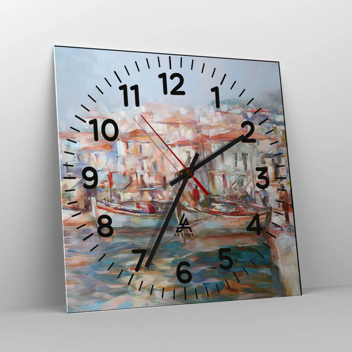 Wanduhr - Glasuhr - Pastell-Sommerferien - 40x40 cm
