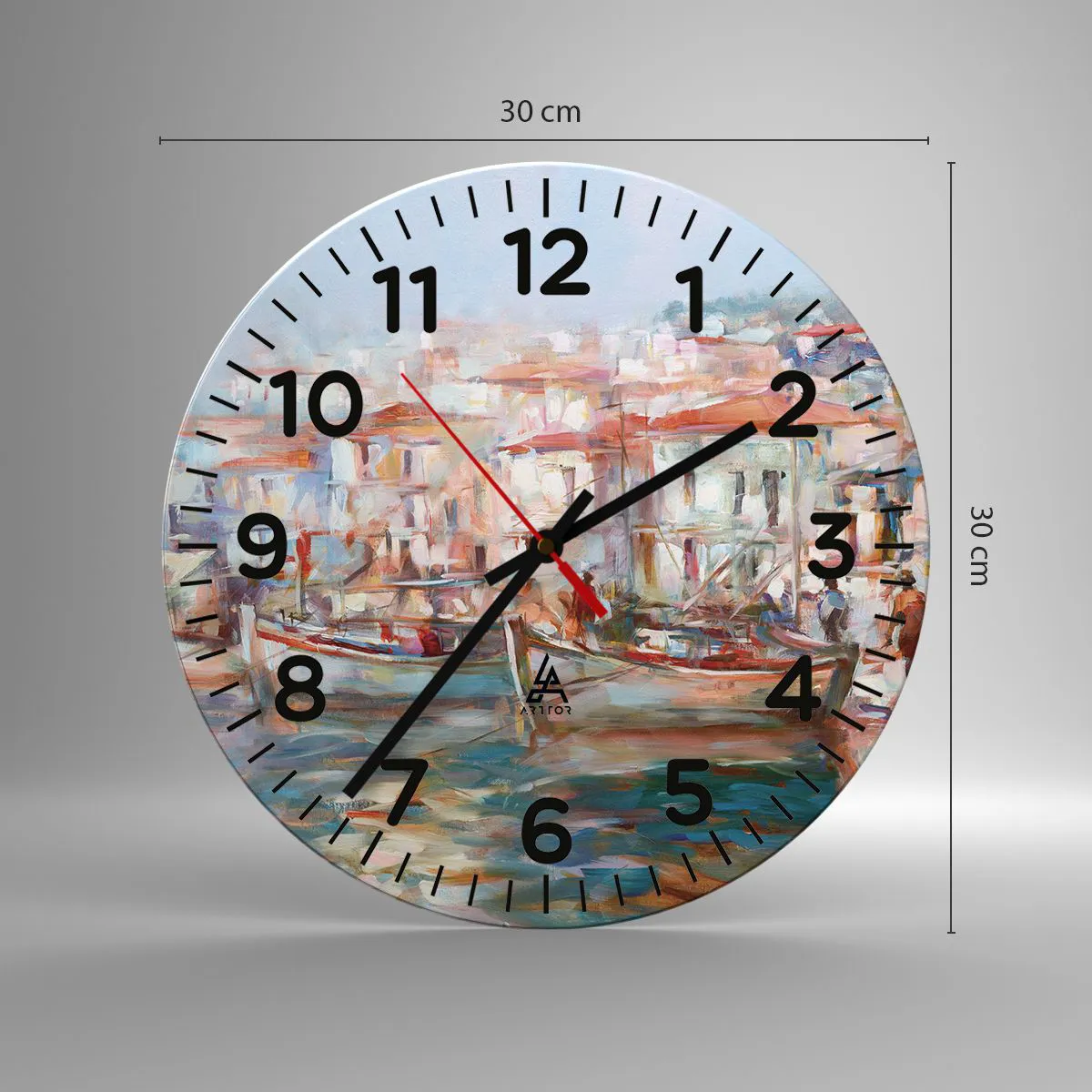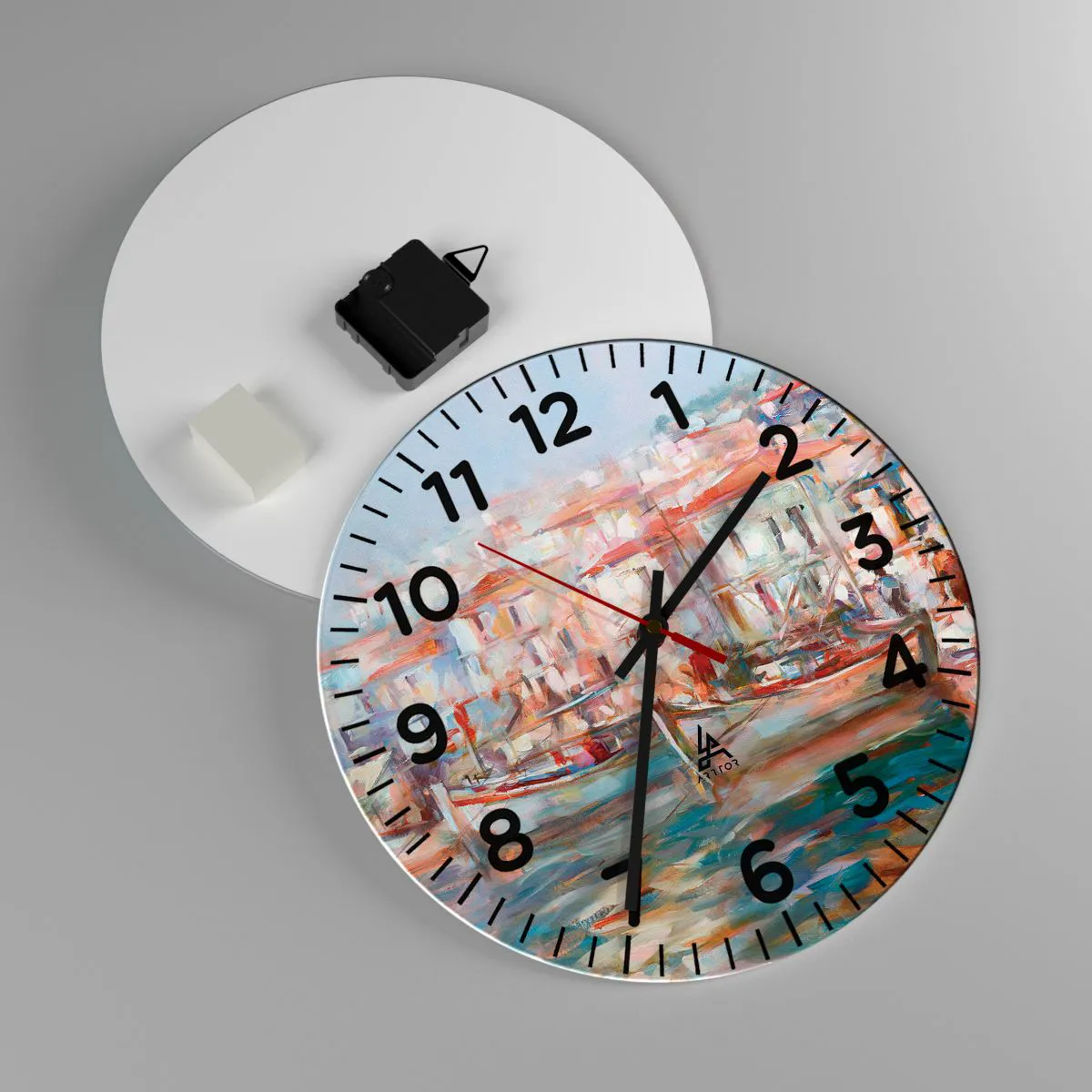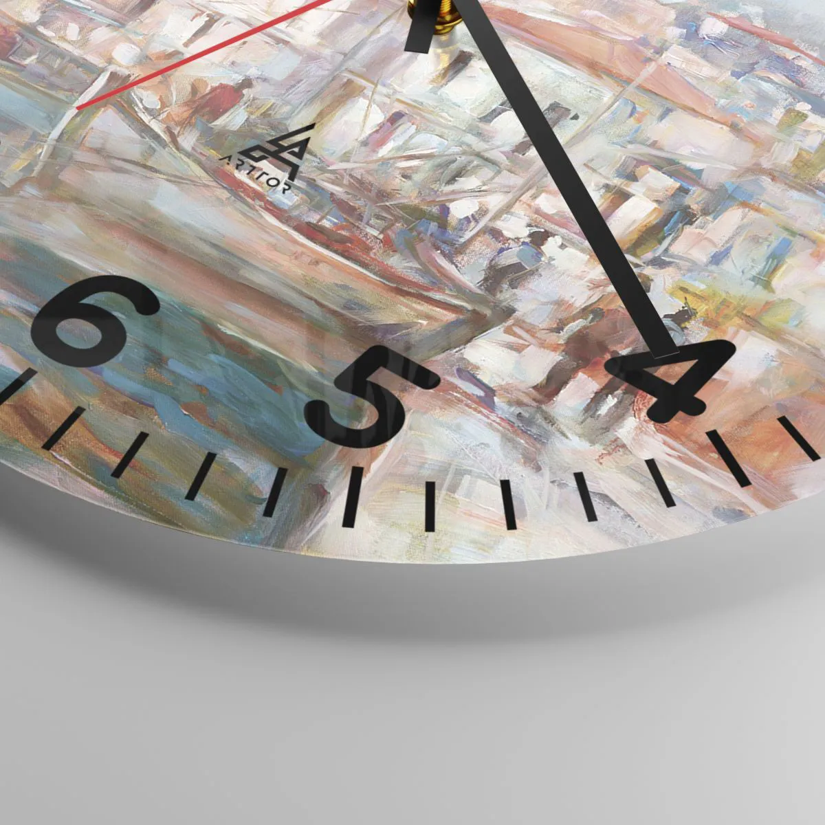 Die Uhr besteht aus robustem 4 mm dickem Glas. Glas bewahrt die natürlichen Farben des Drucks