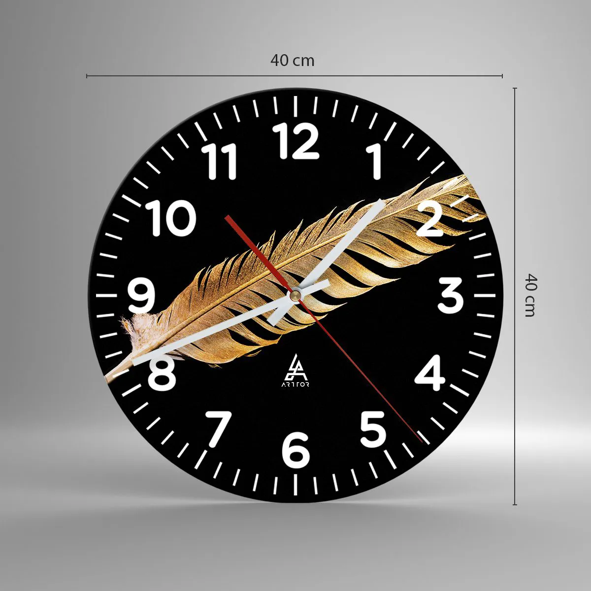 Die Uhr besteht aus 4 mm dickem Sicherheitsglas Glas. Die Herstellungstechnologie der Uhr entspricht der Sicherheitsklasse 2B2 gemäß der Norm PN-EN 12600: 2004, die Stoßfestigkeit garantiert. Die Uhr auf dem Glas ist bereit zu hängen - es hat einen Metallanhänger, einen Anhänger auf der Rückseite der Uhr und einen Schaumstoffabstand, der einen gleichmäßigen Abstand zwischen der Uhr und der Wand reguliert. Die Uhr hat einen geräuschlosen Schwimmmechanismus, der von einer 1,5-V-Batterie betrieben wird - AA-Batterie inbegriffen).