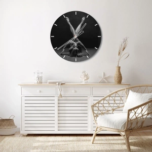 Die Uhr besteht aus 4 mm dickem Sicherheitsglas Glas. Die Herstellungstechnologie der Uhr entspricht der Sicherheitsklasse 2B2 gemäß der Norm PN-EN 12600: 2004, die Stoßfestigkeit garantiert. Die Uhr auf dem Glas ist bereit zu hängen - es hat einen Metallanhänger, einen Anhänger auf der Rückseite der Uhr und einen Schaumstoffabstand, der einen gleichmäßigen Abstand zwischen der Uhr und der Wand reguliert. Die Uhr hat einen geräuschlosen Schwimmmechanismus, der von einer 1,5-V-Batterie betrieben wird - AA-Batterie inbegriffen).