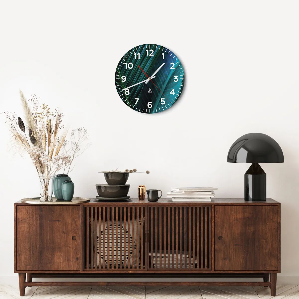 Die Uhr besteht aus robustem 4 mm dickem Glas. Glas bewahrt die natürlichen Farben des Drucks