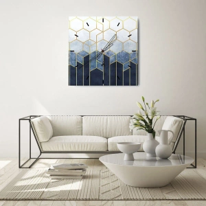 Die Uhr besteht aus 4 mm dickem Sicherheitsglas Glas. Die Herstellungstechnologie der Uhr entspricht der Sicherheitsklasse 2B2 gemäß der Norm PN-EN 12600: 2004, die Stoßfestigkeit garantiert. Die Uhr auf dem Glas ist bereit zu hängen - es hat einen Metallanhänger, einen Anhänger auf der Rückseite der Uhr und einen Schaumstoffabstand, der einen gleichmäßigen Abstand zwischen der Uhr und der Wand reguliert. Die Uhr hat einen geräuschlosen Schwimmmechanismus, der von einer 1,5-V-Batterie betrieben wird - AA-Batterie inbegriffen).