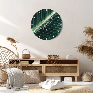 Wanduhr - Glasuhr - Nahaufnahme der Struktur eines grünen Blattes - 30x30cm - Rhythmus der Natur - Moderne Wanddekoration für Wohnzimmer und Schlafzimmer ARTTOR