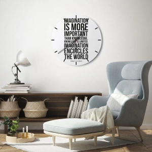 Wanduhr - Glasuhr - Inspirierendes Zitat auf weißem Hintergrund in schwarzer Schrift - 30x30cm - Einstein über die Kraft der Vorstellungskraft - Moderne Wanddekoration für Wohnzimmer und Schlafzimmer ARTTOR