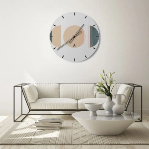 Das Motiv besteht aus harmonischen Formen und zarten Beige-, Blau- und Weißtönen, die ihm einen universellen Charakter verleihen. Die Uhr passt perfekt in moderne, minimalistische Innenräume wie Wohnzimmer, Schlafzimmer oder Büro und verleiht ihnen Subtilität und Leichtigkeit.