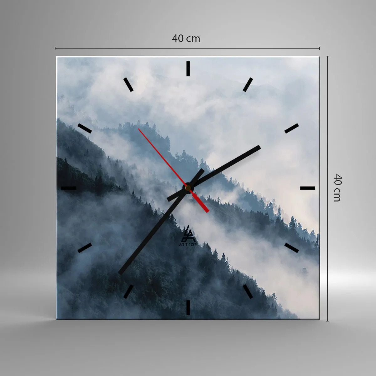 Wanduhr - Glasuhr - Mystik der Berge - 40x40 cm