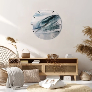 Wanduhr - Glasuhr - Eine Meereswelle, eingefangen in einem dynamischen Moment vor dem Himmel - 30x30cm - Wasserspitze - Moderne Wanddekoration für Wohnzimmer und Schlafzimmer ARTTOR